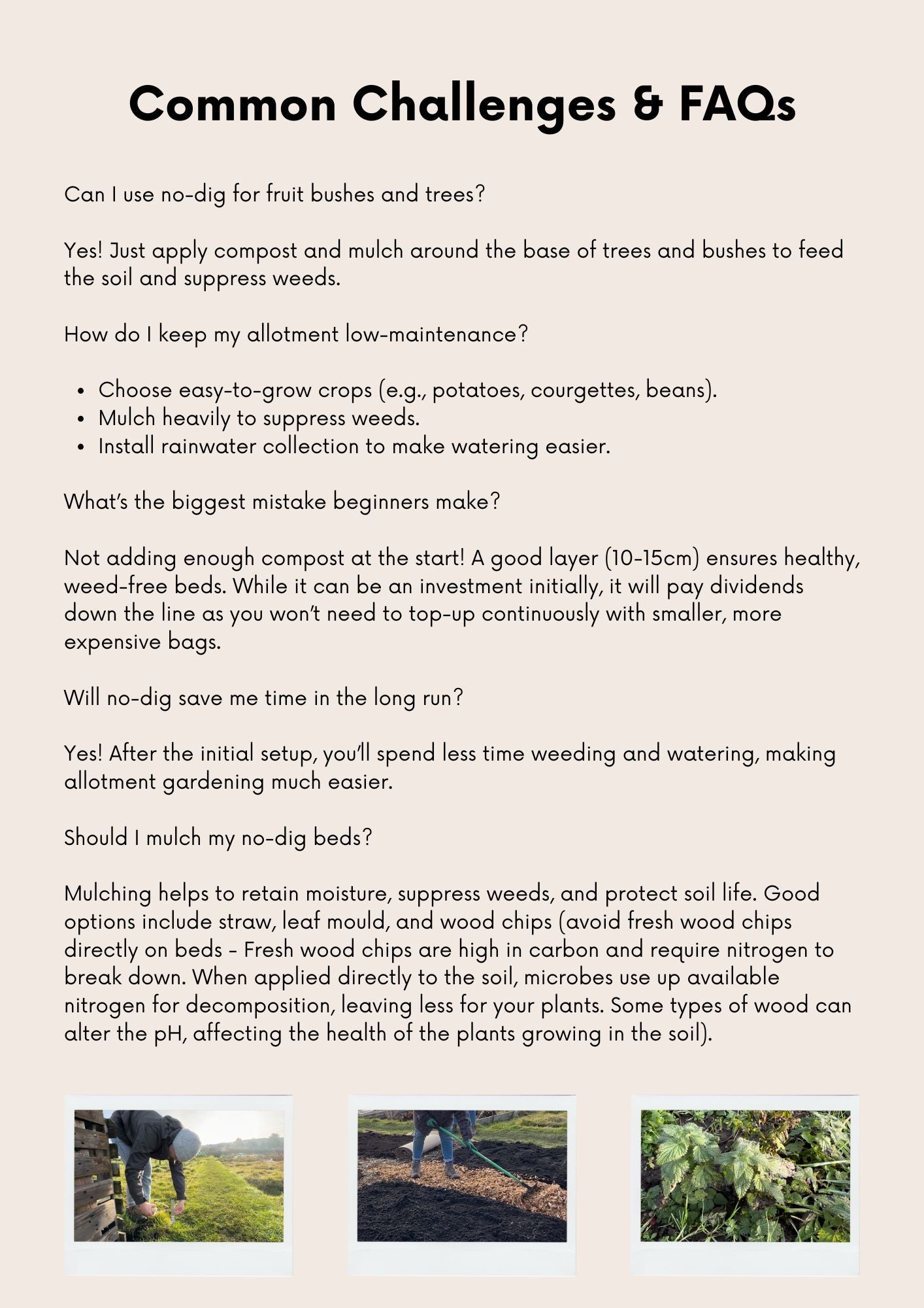 ✅ That’s exactly why this guide exists. The no-dig method lets you skip the hardest part (digging!) and go straight to growing. With this guide, you’ll get your allotment set up faster and with less effort—even if you only have a few hours a week.